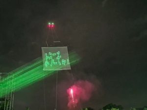 常総市きぬ川花火大会で「レーザー空中サインシステム」のデモ、KSACデモデイ2025にも出展