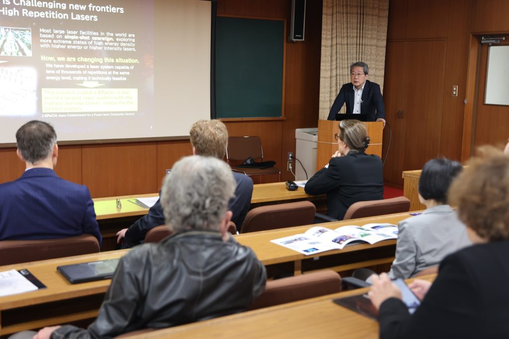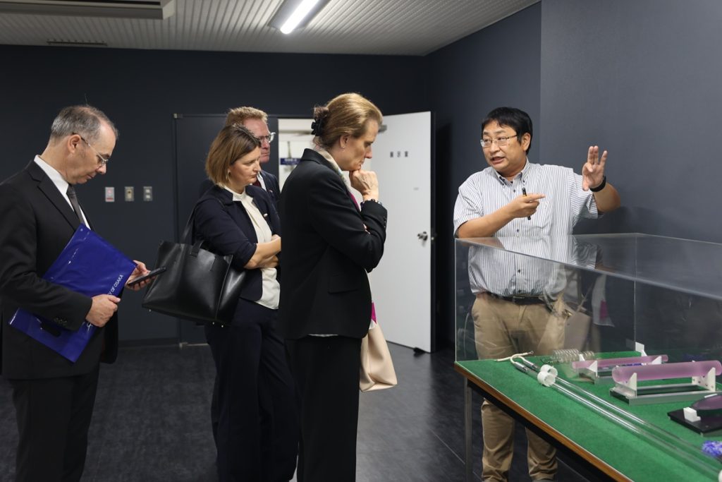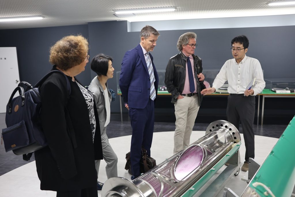 はじめに、兒玉了祐所長より研究所の概要説明が行われ、その後、余語覚文副所長および藤岡慎介准教授の案内で施設をご見学いただきました。見学の途中では、多岐にわたるご質問をいただき、活発な意見交換が交わされました。