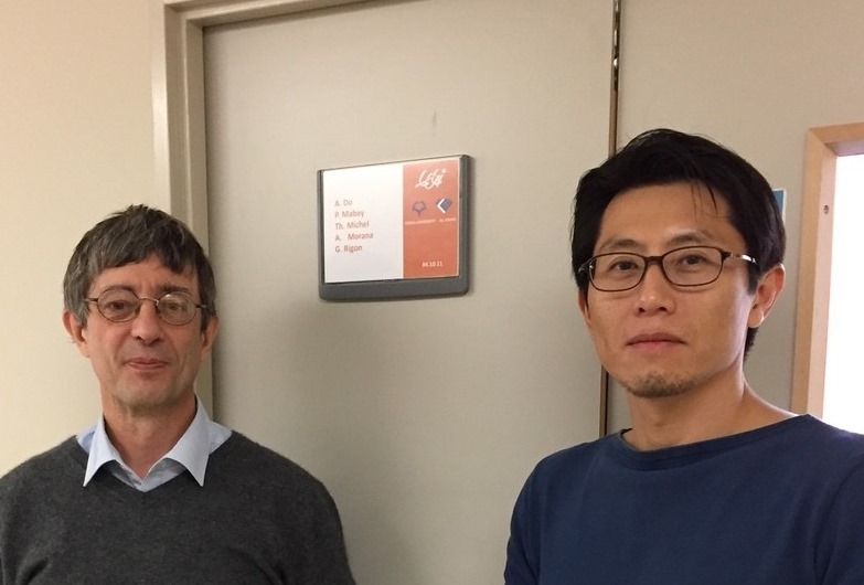 [左からDr. Patrick Audebert (LULI 所長)、尾崎典雅准教授(レーザー研兼任教員、工学研究科准教授)]