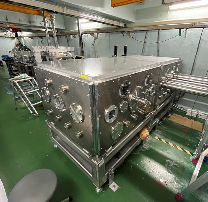 小さな実験室内に収まる小型レーザー装置を用いて、手軽に高品質な中性子ビームを発生させることができれば、核融合に関する研究のみならず、中性子ラジオグラフィ、スピン偏極中性子の発生や、中性子核物理実験、がんだけを狙い撃ちする高効率ながん治療など多数の応用ができるようになります。我々が独自に開発した手法を基に、小型レーザー装置を使って高品質な中性子ビームを発生させる装置の建設を進めつつ、中性子発生のための高繰り返しターゲット供給装置の開発や専用の中性子計測器の開発などを行っています。少人数でも手軽に中性子発生実験ができる環境の構築を行っています。