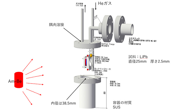 レーザー核融合炉のブランケットには燃料となるトリチウムの増殖と発電のための中性子-熱変換の2つの役割があります。トリチウムの増殖にはLiの化合物や合金の使用が検討されていますが、長期間安定にトリチウムを製造する技術は確立されていません。また、トリチウムの増殖と同時に発電のためには熱の回収も必要です。そこでブランケットに使用される材料やブランケットの構造などの最適化研究を行っています。シミュレーションを使った予測と中性子源を使用する実験を実施しています。