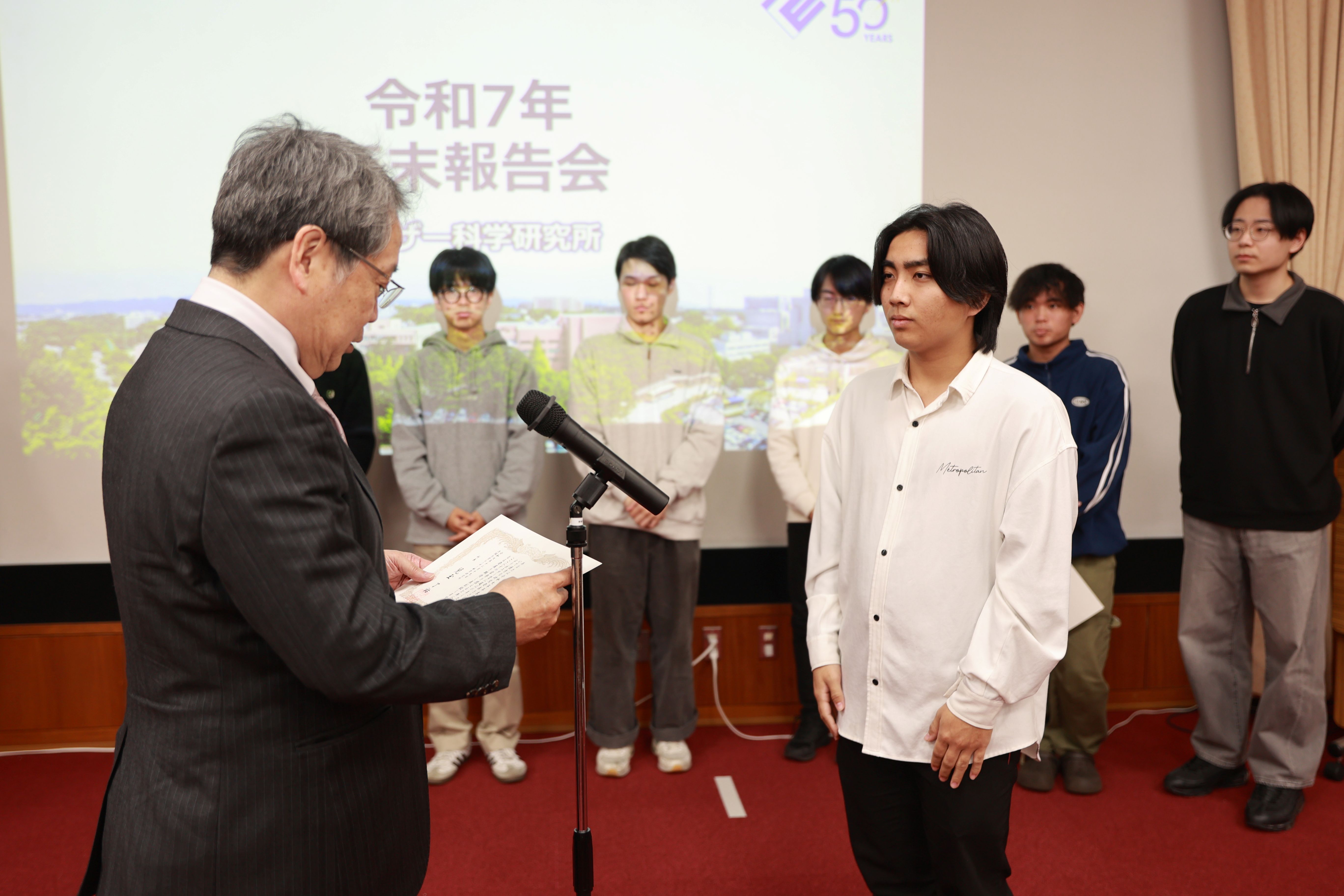 吹田祭の麻雀大会で、多田君(M1)が4位の表彰を受けました。