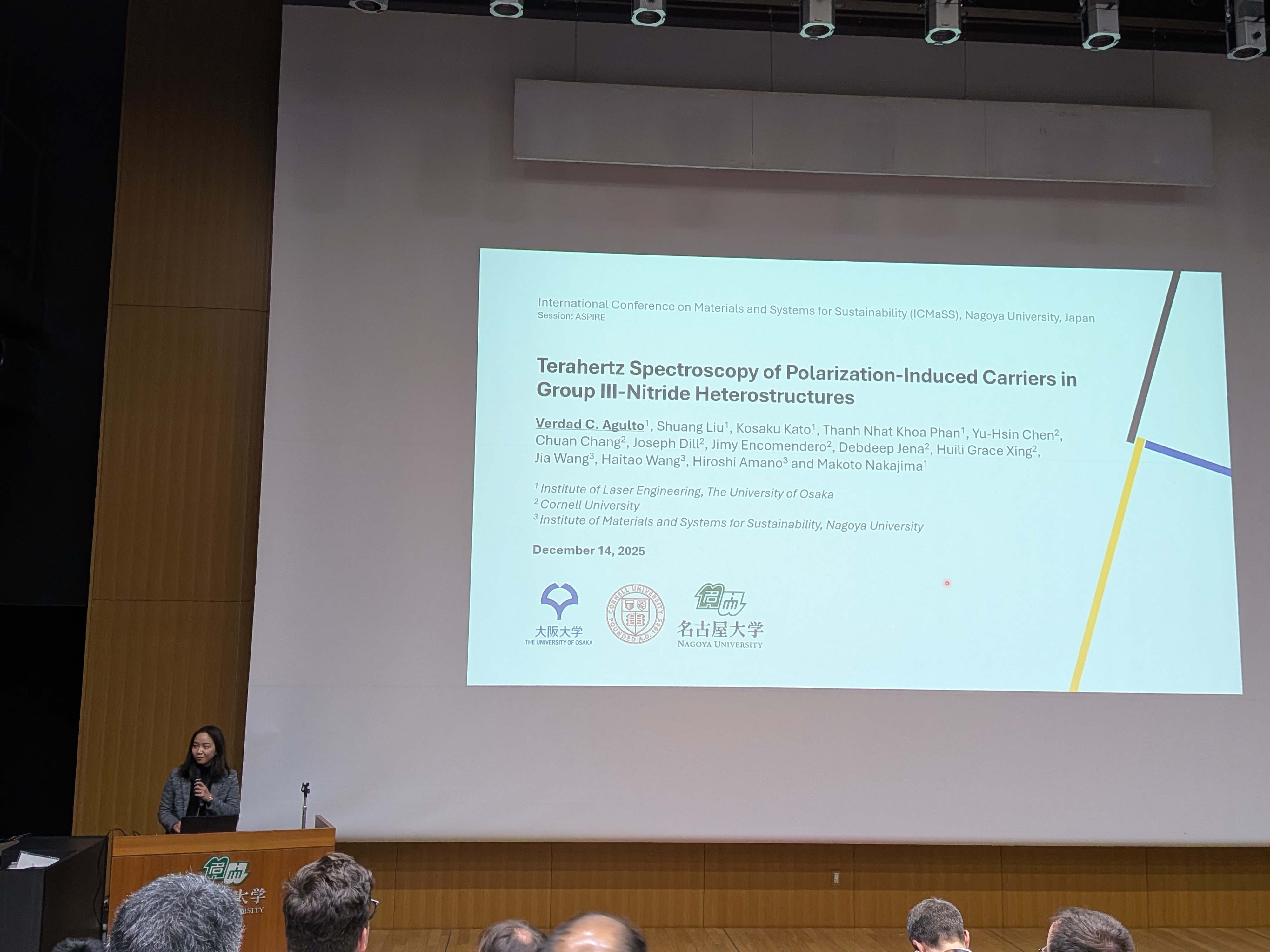 Agulto先生が名古屋大学で行なわれたInternational Conference on Materials and Systems for Sustainability2025 (ICMaSS2025) にて"Terahertz Spectroscopy of Polarization-Induced Carriers in Group III-Nitride