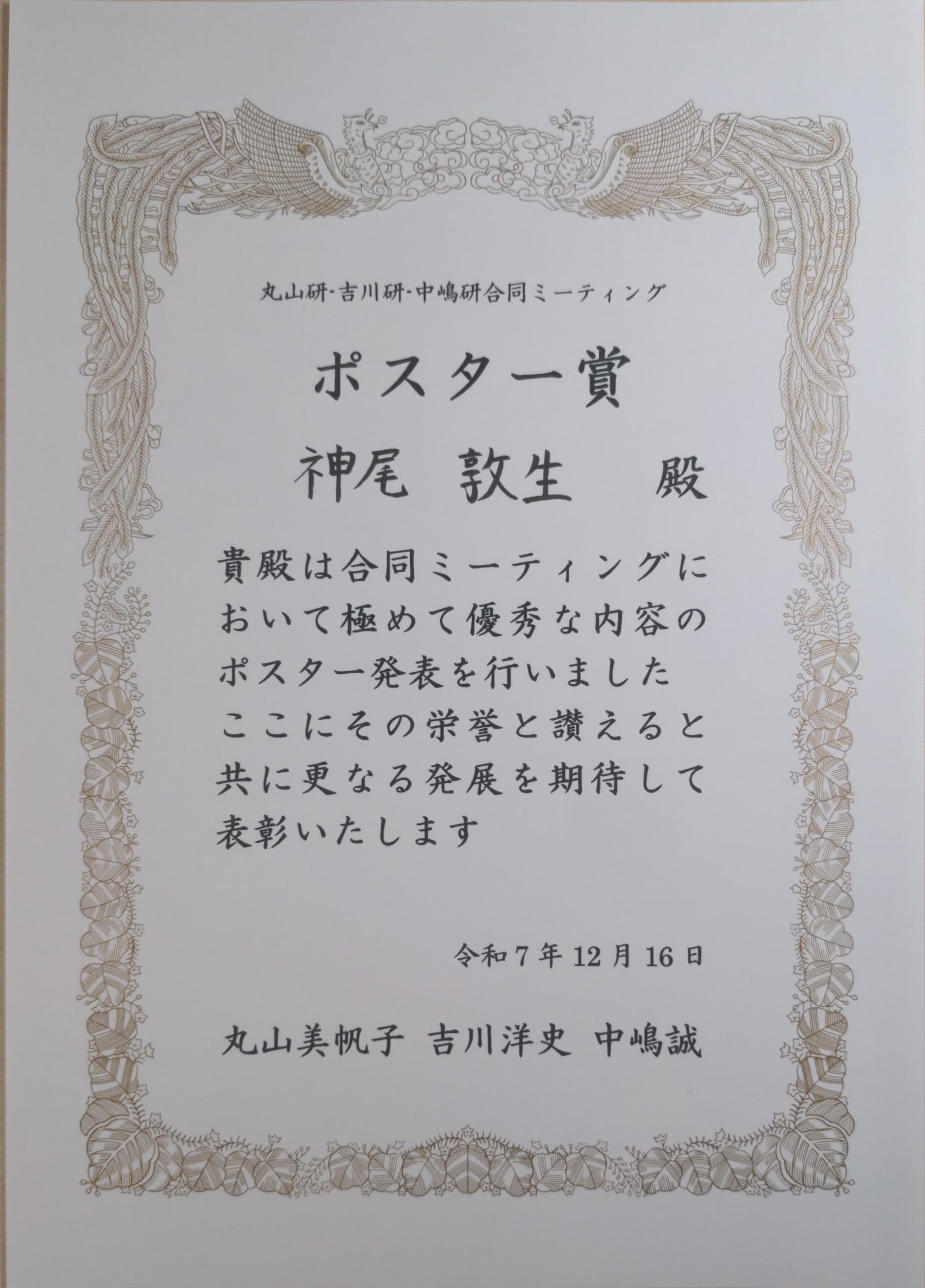 Mr. Masato OTA, a D3 student under the guidance of Prof. Nakajima, received the Excellent Student Presentation Award at the 2021 Autumn Meeting of the Physical Society of Japan held online from September 20 to 23, 2021.